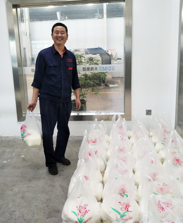 ??????? 隨著梅雨季節的過去、三伏天的到來,一年一度的酷夏即將華麗登場,在這“熱情似火”的日子里,為進一步關心員工的身心健康,傳遞公司對員工的關愛,大禹公司特意為每一位員工送上了十斤白糖,想把最實實在在的“清涼”和問候送給大家,讓大家在這個夏日里 “神清氣爽”。圖為白糖準備、發放場景。